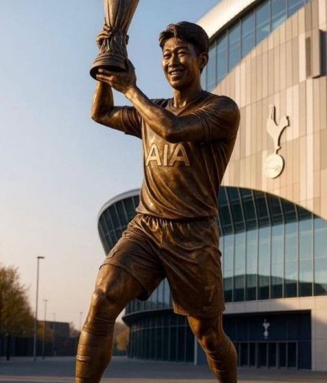 AI로 제작된 손흥민 동상 이미지. 토트넘 홋스퍼 선수들 사이에서 스타디움 앞에 손흥민의 동상을 세우자는 제안까지 나와 화제를 모은 바 있다. (사진 = 인스타그램 캡처) |