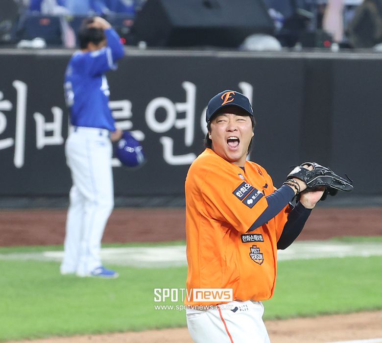 한화는 지난 14일 대전 안방에서 열린 플레이오프 1차전에서 9회초 구원 등판한 마무리투수 김서현이 이재현에 우중월 솔로홈런을 맞은데 이어 이성규에 좌전 적시타를 허용, 9-8 1점차로 쫓기는 신세가 됐다.
