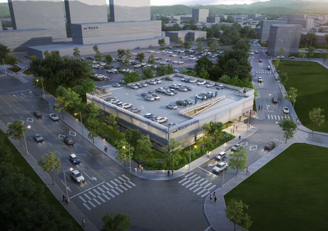 임시운영하는 예산군 공영주차타워 조감도.