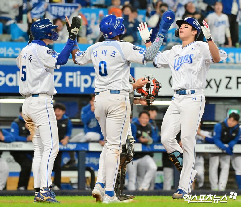 김영웅은 "디아즈가 올해 정말 좋았고 아무도 범접할 수 없는 성적을 내지 않았나. 솔직히 정규시즌 때도 그렇고 앞에서 디아즈가 홈런을 치면 괜히 어깨에 힘이 들어갔는데, 포스트시즌에서도 예상하긴 했다. (팀이) 올라갈수록 디아즈를 많이 거를 것 같았고, 내가 한 번 치면 (디아즈를) 못 거르지 않을까 싶어서 잘 준비했다"고 말했다.