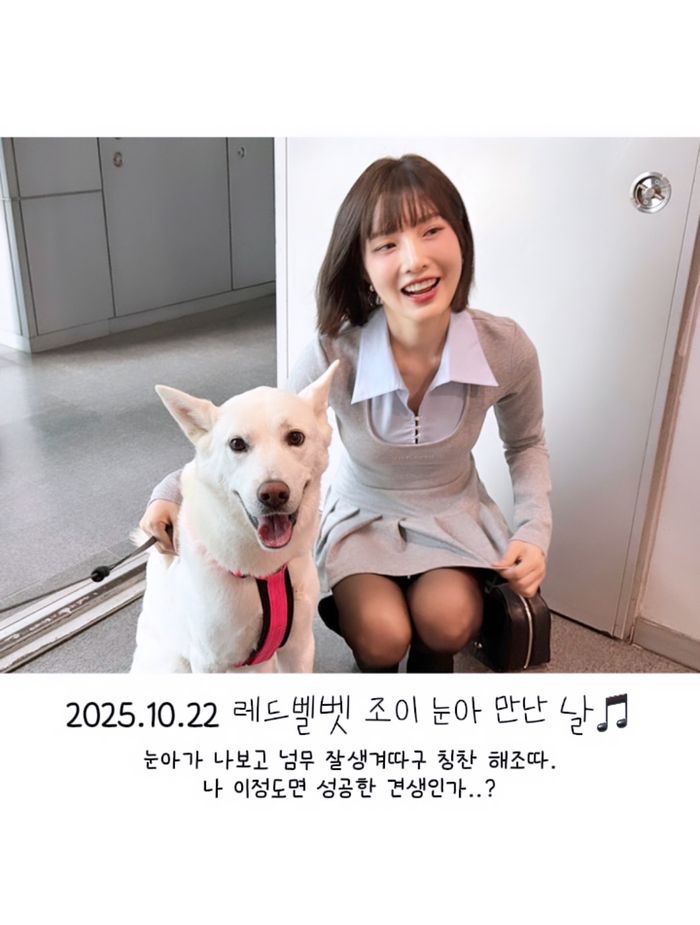 [스포츠서울 | 최승섭기자] 걸그룹 레드벨벳의 조이와 ‘꽃미남 진돗개’ 풍이의 훈훈한 만남이 보는 이들에게 힐링을 선사했다.
