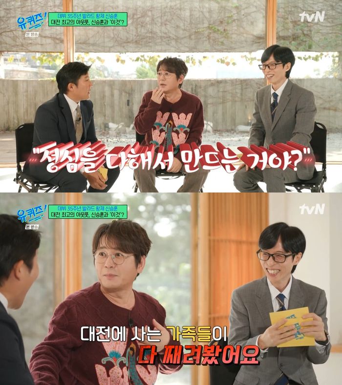 이날 유재석은 신승훈이 노래 부르는 영상에 달린 댓글 중 ‘우리는 잠시 잊고 있었다. 성심당 이전에 대전에 신승훈이 있었다는 걸’이라는 댓글을 언급했다.