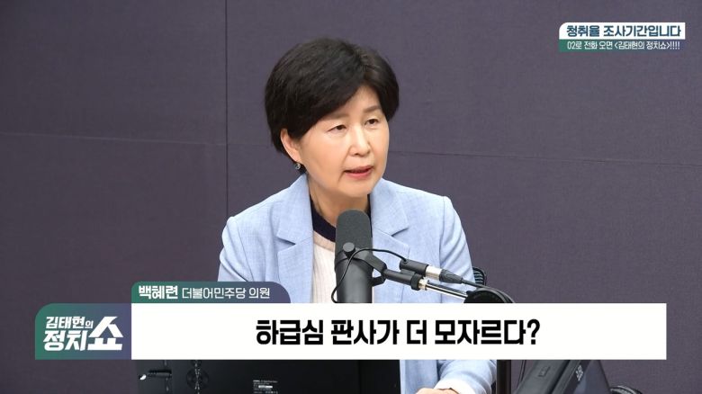 ▶백혜련 : 조희대 대법원장 그 건은 전혀 생각하지 않았고요. 그건 어느 정도 법원이 준비할 시간을 주기 위해서 1년이라는 기간을 둔 것일 뿐이고요. 사실은 제가 언론에서도 여러 번 말했지만 이재명 대통령만 압도적인 다수를 임명하게 된다면 그것은 분명히 문제제기가 돼야 된다고 생각합니다.