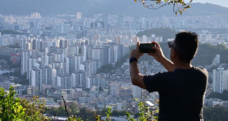 ‘10.15 주택시장 안정화 대책’이 발표된 가운데 15일 오전 서울 남산에서 한 시민이 서울 시내 아파트를 바라보고 있다. 이상섭 기자