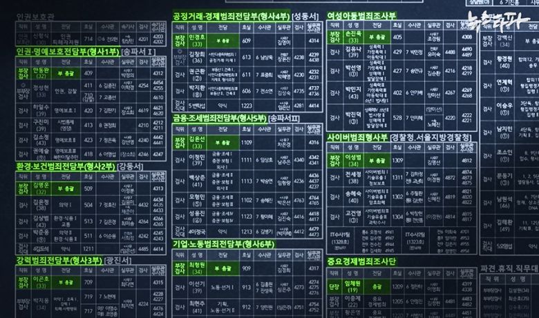 2021년 추석 연휴를 앞두고 당시 서울동부지검장이던 심우정 전 검찰총장이 특수활동비를 지급한 대상자를 '검찰실 배치표'에 표시한 결과. 서울동부지검 소속 9개 수사 부서의 부서장 전원에게 특수활동비를 골고루 나눠준 사실을 알 수 있다.