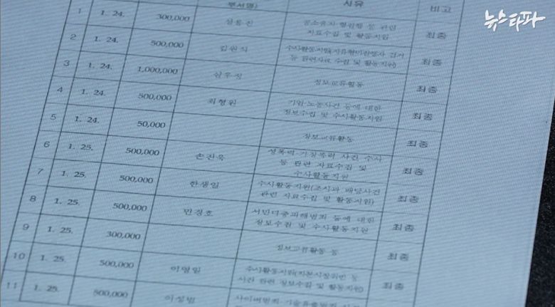 뉴스타파가 '먹칠 투성이' 특수활동비 자료에서 찾아냈던 '심우정 명절 떡값 특수활동비' 의혹의 구체적인 정황.