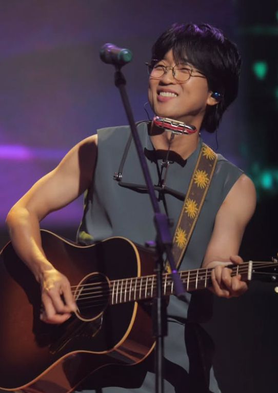공개된 사진 속 박창근은 기타를 연주하며 하모니카를 목에 건 채 무대에 서 있다.