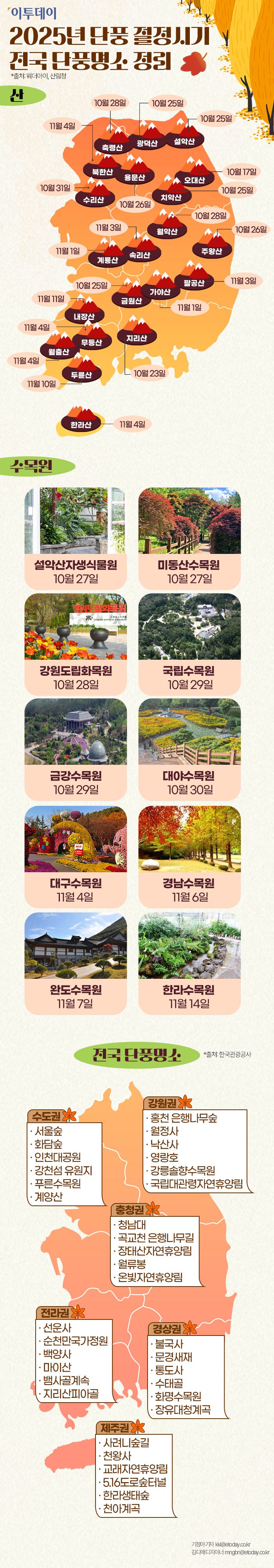 [그래픽 스토리] 2025년 단풍 절정시기·전국 단풍명소 정리