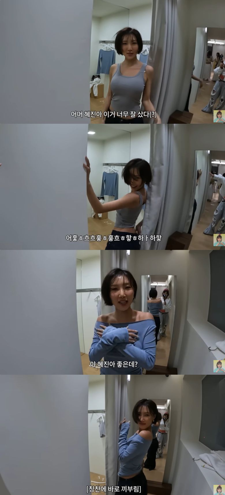 화사는 이은지가 골라준 옷을 입기 위해 피팅룸으로 향했다. 화사는 이은지가 고른 민소매를 입고 등장했고 완벽한 옷태에 이은지는 "이거 무슨 일이냐. 너무 예쁘다. 이거 잘 샀다"며 극찬했다.