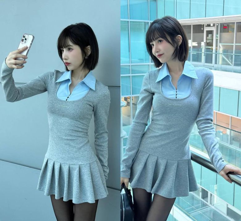 23일 조이는 자신의 개인 계정을 통해 "반가웠어"라는 글과 함께 여러 장의 사진을 게재했다. 공개된 사진 속 조이는 하늘색 셔츠와 회색 원피스가 매치된 의상을 입은 채 다양한 포즈를 취하고 있다.
