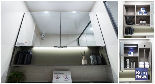 또한 날씨 · 건강 정보를 표시하는 스마트 미러 디스플레이와 UV-A 살균 모듈 등 최신 편의 기능을 유기적으로 결합해 사용자의 일상 편의성을 극대화했다. 물과 습기에 강한 PS(폴리스티렌) 소재를 사용해 내구성을 강화했으며, 세련된 디자인과 견고한 형태감으로 욕실 공간의 품격을 한층 끌어올렸다.