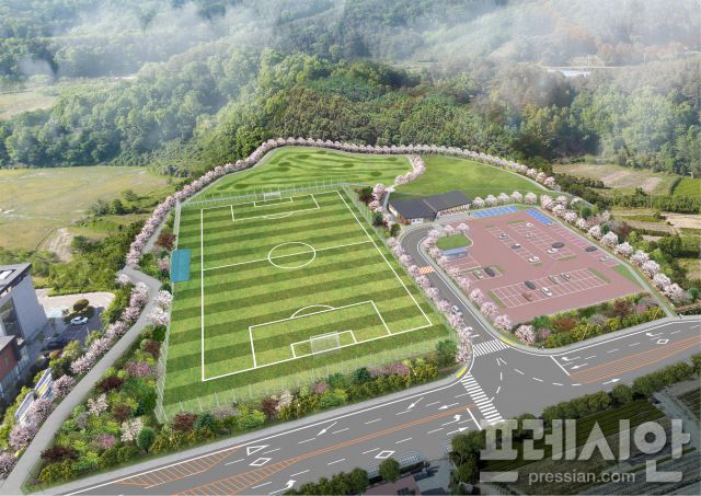 ▲완주군이 조성 중인 ‘소양 복합체육시설’의 조감도. 축구장과 파크골프장, 다목적체육관, 주차장 등을 갖춘 생활체육 복합공간으로 2027년 준공을 목표로 하고 있다. ⓒ완주군 |