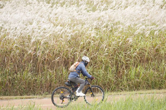 21일 아침저녁으로 쌀쌀한 날씨가 이어지는 가운데 광주 서구 서창 영산강 자전거길에 시민들이 자전거를 타고 있다. (사진=뉴스1) |