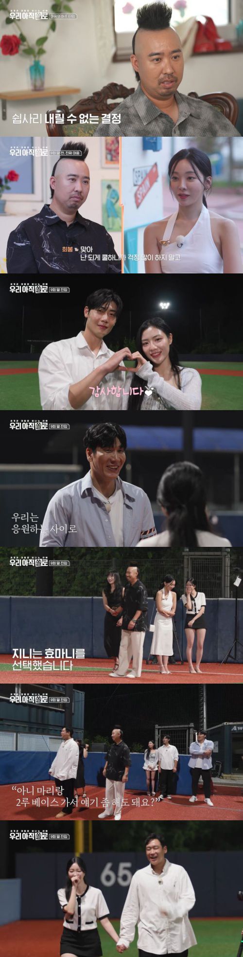 23일 공개된 야구인들의 리얼 연애 예능 ‘우리 아직 쏠로’(이하 ‘우아쏠’) 최종회에서는 ‘지니’ 유희관, ‘우기’ 박재욱, ‘민빈’ 민경수, ‘커피’ 조병욱 등 야구선수 출신 ‘빛남’ 4인과 ‘효마니’-‘마리’-‘희봄’-‘유니’ 등 ‘빛녀’ 4인방이 모든 데이트를 마치고 ‘최종 선택’에 돌입하는 현장이 그려졌다.