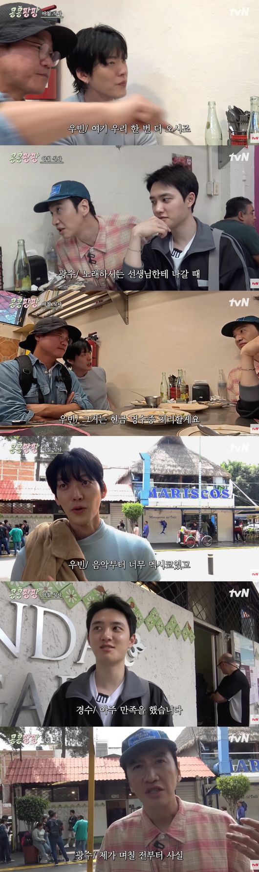 지난 24일 방송된 tvN 예능 '콩 심은 데 콩 나서 웃음팡 행복팡 해외탐방(약칭 콩콩팡팡)'에서는 이광수, 김우빈, 도경수가 멕시코 여행을 즐겼다.
