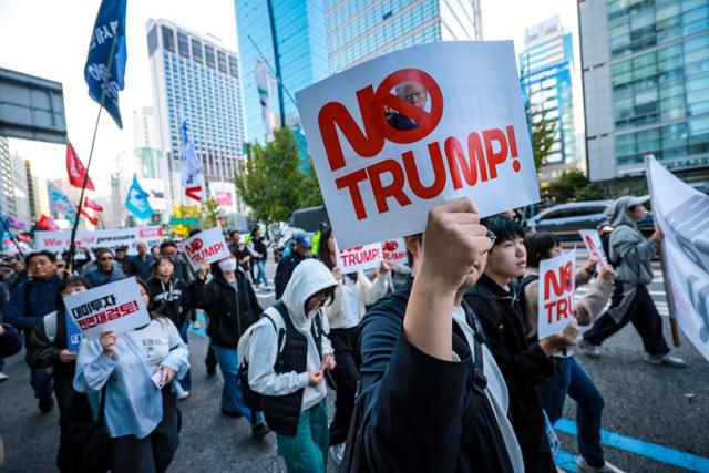 아시아태평양경제협력체(APEC) 정상회의 참석을 위한 도널드 트럼프 미국 대통령의 방한을 앞두고, 전국민주노동조합총연맹(민주노총)이 정부에 대미 투자 전면 재검토를 촉구하는 집회를 열었다.