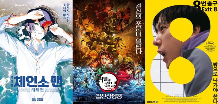 (MHN 홍동희 선임기자) 실시간 예매 순위(10월26일 오전 기준) 상위권이 '극장판 체인소 맨: 레제편', '8번 출구', '극장판 귀멸의 칼날: 무한성 편' 등 일본 영화와 애니메이션으로 채워지는 현상이 뚜렷하다. 한국 영화 신작은 '퍼스트 라이드' 정도가 힘겹게 순위 경쟁을 벌이는 모양새다. 영화진흥위원회 통합전산망(KOBIS) 박스오피스 데이터 역시 비슷한 흐름을 보인다. 이는 단순한 유행을 넘어 한국 극장가 관객 소비 패턴의 구조적 변화를 시사하고 있다.