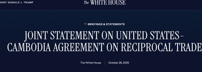 또 미국과 캄보디아는 미국 농산물에 대한 규제 장벽 해소, 강제 노동 금지, 노동법 집행, 환경 보호 조치, 그리고 디지털 무역·서비스·투자·지식재산권·국영기업·공급망 등과 관련한 규범 협력을 약속했다.