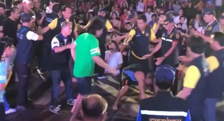 그러자 행사를 감독하는 촌장인 쏨퐁 인응언은 지방 공무원들에게 "두 사람을 무대 아래로 끌어내려 일대일 싸움을 하게 만들라"고 지시했습니다.