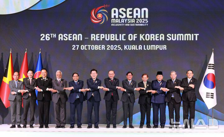 [쿠알라룸푸르·서울=뉴시스]조재완 하지현 김경록 기자 = 이재명 대통령은 27일(현지시간) 한국과 아세안(동남아시아국가연합) 간 '포괄적 전략 동반자 관계(CSP)'를 중심으로 한 영내 협력 강화 방안을 제안했다. 온라인 스캠(사기) 범죄 근절을 위한 수사 공조의 필요성을 강조하는 한편, 한반도 평화를 위한 아세안의 지지도 요청했다.