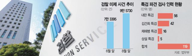검사 인력이 대거 특검으로 빠져나가면서 민생 범죄 수사가 더욱 지연될 것이라는 우려가 나온다. 법무부에 따르면 6월 말 기준 전국 검찰청의 미제 사건은 7만 3395건이었으나 8월 말에는 9만 5730건으로 두 달 새 2만 2335건(30%) 증가했다. 검찰 내부에서는 인력난에 대한 불만과 반발의 목소리도 커지고 있다. 공봉숙 서울고검 검사는 24일 내부망 ‘이프로스’에 “검사를 못 믿는다며 특검을 하면서 정작 그 특검에 검사와 검찰 수사관을 다시 파견한다는 것은 자기모순”이라고 비판했다. 박철완 부산지검 중요경제범죄조사단장도 “특정 사건의 성격을 수사 개시 이전부터 정치적으로 규정하는 행위가 과연 온당한지 깊은 고민이 필요하다”고 말했다.