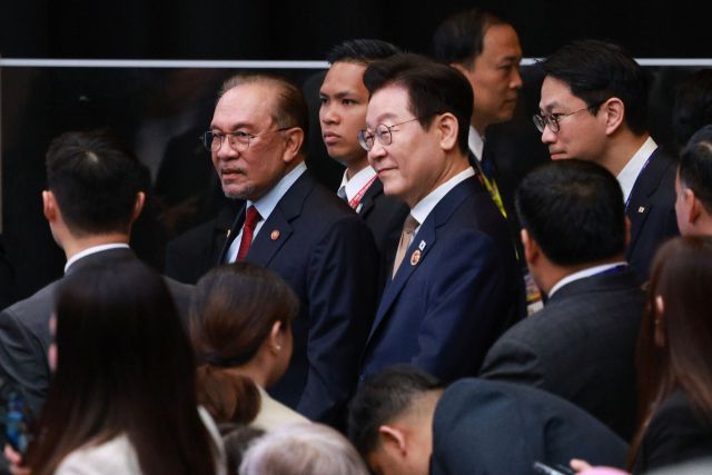 이재명 대통령이 27일 공개된 블룸버그통신과의 인터뷰에서 한미 관세 협상의 핵심 쟁점인 3500억 달러 규모의 대미 투자 펀드와 관련해 “투자 방식과 규모, 일정, 손실 분담 및 이익 배분 등 모든 부문이 쟁점으로 남아 있다”고 밝혔다. 경주 아시아태평양경제협력체(APEC) 정상회의를 계기로 29일 열리는 한미 정상회담에 맞춰 관세 협상을 마무리하지 못할 가능성을 시사한 것으로 보인다. 한미 간 관세 협상의 막판 힘겨루기가 치열한 가운데 도널드 트럼프 미국 대통령은 이날 말레이시아를 떠나 일본 도쿄로 향하는 대통령 전용기에서 “김정은(북한 국무위원장)이 원한다면 기꺼이 만날 것”이라고 재차 밝히면서 북미 회담이 가능할 경우 한국에 더 체류할 수 있음을 나타냈다.