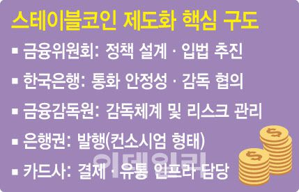 [이데일리 최정훈 기자] 가상자산 제도화 2단계 입법이 임박한 가운데 금융감독원이 카드사를 상대로 스테이블코인 관련 사업 현황을 점검하고 있다. 금융위원회가 연내 법안 제출을 예고한 뒤 감독 방향을 사전에 준비하려는 차원으로 풀이된다. 업계에선 은행 중심의 발행 구조가 유력한 가운데 카드사에 결제·유통 역할을 부여할 것으로 내다보고 있다.