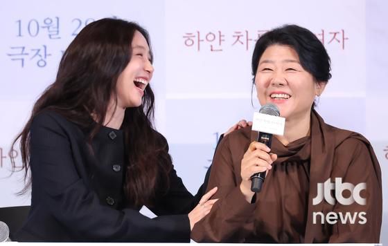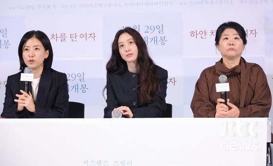 27일 오후 서울 용산 CGV 아이파크몰에서 영화 '하얀 차를 탄 여자' 언론시사회가 열렸다. 현장에는 고혜진 감독, 배우 정려원, 이정은이 참석해 작품에 대한 이야기를 나눴다.