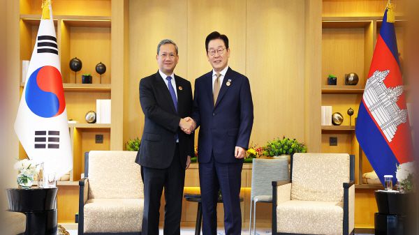 훈 마네트 캄보디아 총리와 만난 이 대통령.