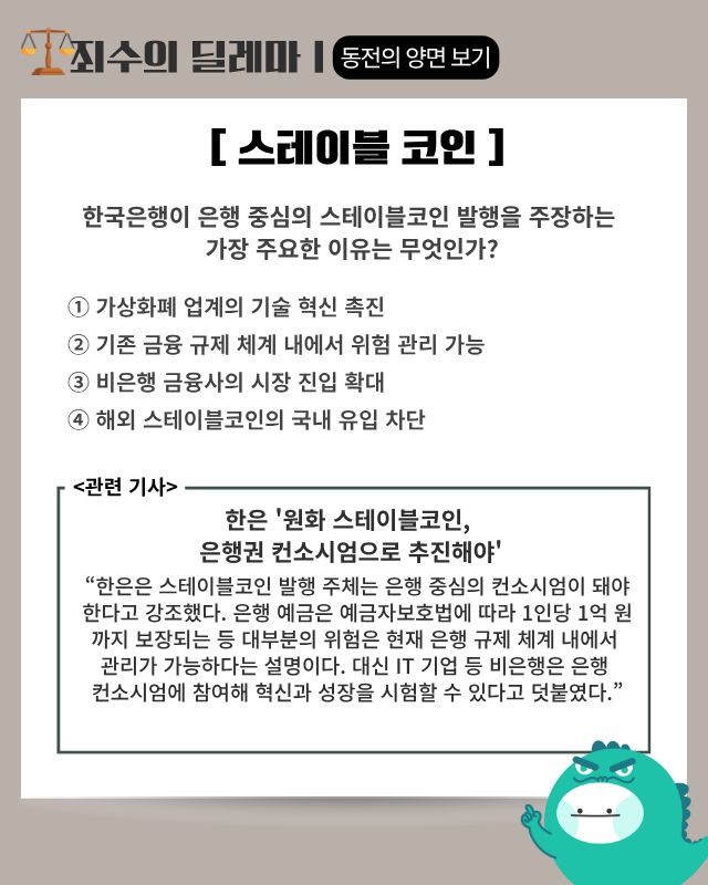 ▶ 기사 바로가기: 한은 “원화 스테이블코인, 은행권 컨소시엄으로 추진해야”