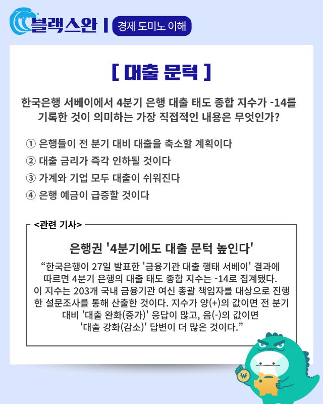 ▶ 기사 바로가기: 4분기 은행 대출태도 -14···가계 주택대출 문턱 여전히 높아