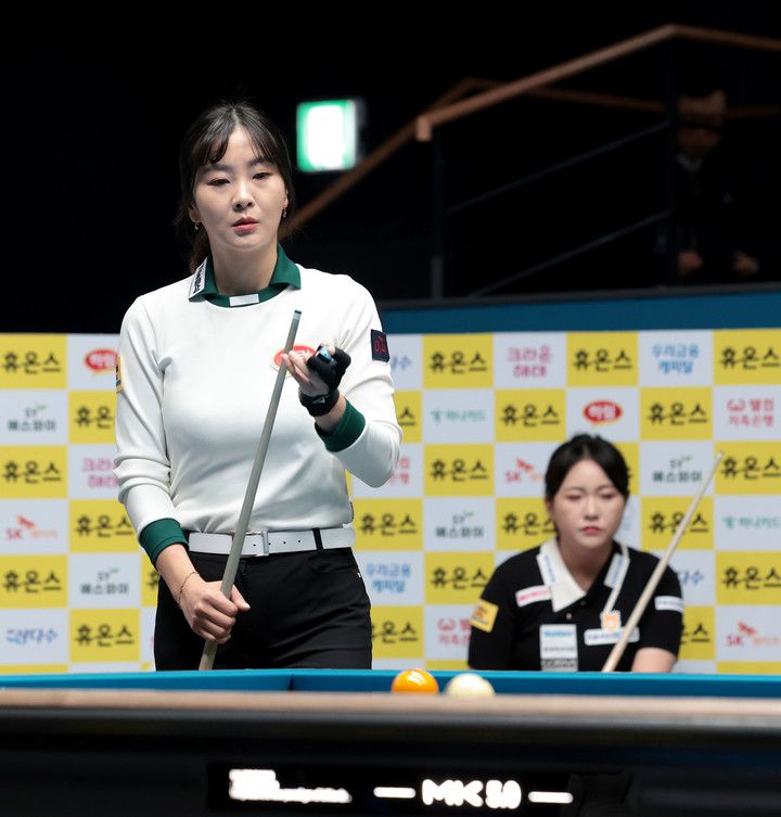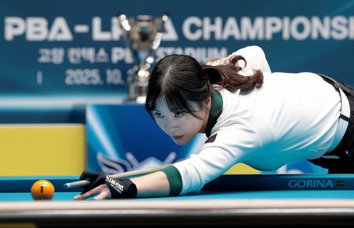 김민아(NH농협카드)가 27일 오후 경기도 고양 킨텍스 PBA스타디움에서 열린 2025-26시즌 6차 투어 '휴온스 LPBA 챔피언십' 결승전에서 김상아(하림)를 세트스코어 4-0(11-3, 11-4, 11-6, 11-10)으로 돌려세웠다.