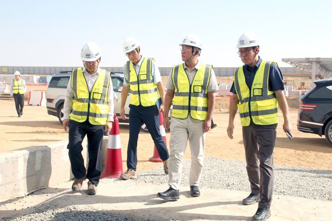 정 회장은 무더위 속에서 근무하는 현지 임직원들을 격려하고 "사우디아라비아 생산 거점 구축은 현대차가 중동에서 내딛는 새로운 도전의 발걸음"이라며 "고온, 사막 등 이전의 거점들과는 다른 환경에서 고객의 기대를 뛰어넘는 모빌리티를 적기에 공급할 수 있도록 모든 부문에서 철저한 준비를 해야한다"고 당부했다.