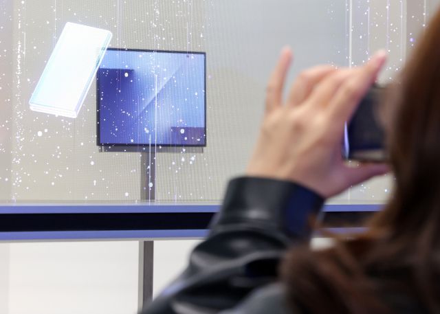 28일 경북 경주엑스포대공원 내 에어돔 전시장. 홀로그램 영상 속 삼성전자의 차세대 휴대전화 ‘갤럭시 트라이폴드(가칭)’가 두 번 접히는 장면이 나오자 관람객들 사이에서 탄성이 터졌다. 유리 전시관 안에 놓인 기기를 향해 연신 카메라 셔터 소리가 이어졌다. 행사장을 찾은 40대 성 모 씨는 “기기가 두껍거나 지나치게 커 보이지 않는다”면서 “실제 제품이 기대된다”고 했다.