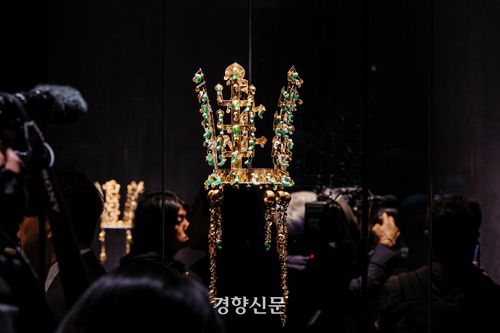 아시아·태평양경제협력체(APEC) 정상회의가 열리고 있는 경북 경주의 국립경주박물관에서 1921년 금관총 발굴 이후 처음으로 신라 금관 6점이 한자리에 모이는 ‘신라 금관, 권력과 위신’ 특별전 미디어행사가 진행되고 있다. 2025.10.27 이준헌 기자 |