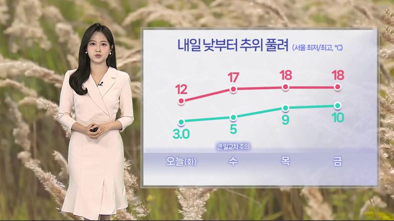 낮부터는 찬 공기가 서서히 물러나며 10월 하순 날씨를 회복하겠습니다.