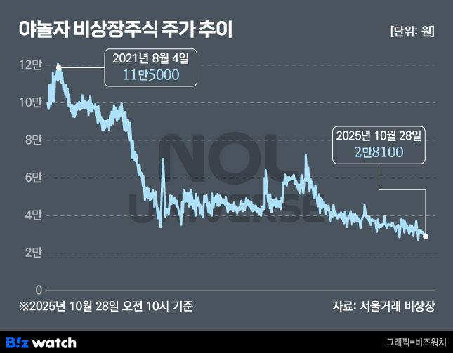 장외시장에서 야놀자의 시가총액도 3조원이 무너졌다. 올해 초만 해도 야놀자 주가는 주당 4만원으로 시총이 4조원을 넘었으나 1년도 안 돼 1조원이 증발했다. 다만 비상장주식은 거래가 뜸하고 거래물량도 적어 기업가치를 반영하는데 한계가 있다.