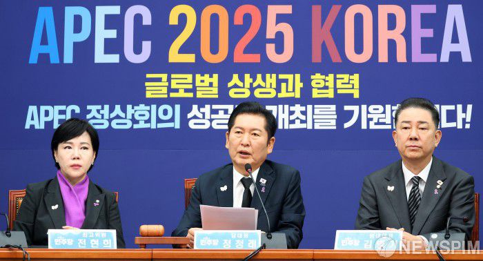 정 대표는 "가장 중요한 것은 대한민국의 국익"이라며 "새로운 무역 경제의 지평을 그려나가는 APEC 정상회의가 될 수 있길 희망한다. 민주당은 APEC 정상회의 성공적인 개최와 대한민국 위상 강화를 위해 국회와 당 차원에서 할 수 있는 모든 협력을 다 하겠다"고 말했다.