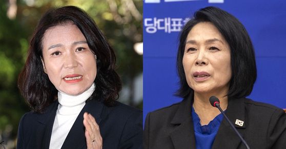 왼쪽부터 이진숙 전 방송통신위원장, 최민희 더불어민주당 의원. 〈사진=연합뉴스〉 |