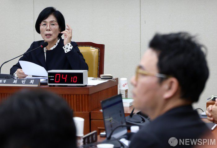 [서울=뉴스핌] 윤채영 기자 = 국민의힘 의원들은 29일 국회 과학기술정보방송통신위원회 국정감사에서 자녀 결혼 논란 등 이유로 최민희 과방위원장에 대한 사퇴를 거듭 촉구했다.