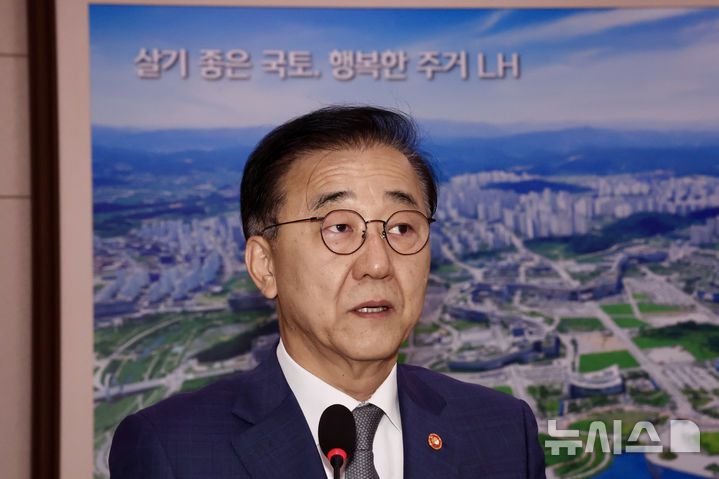 [서울=뉴시스]정진형 기자 = 김윤덕 국토교통부 장관은 29일 이재명 대통령과 참모진이 보유한 주택 처분을 건의해야 한다는 야당 주장에 대해 "검토하겠다"고 답했다.