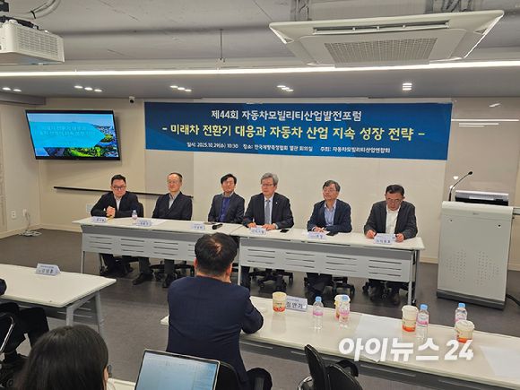 자동차모빌리티산업연합회(KAIA)는 29일 서울 서초구 한국계량측정협회 별관 회의실에서 '미래차 전환기 대응과 자동차 산업 지속 성장 전략'을 주제로 제44회 자동차모빌리티산업발전포럼을 개최했다.
