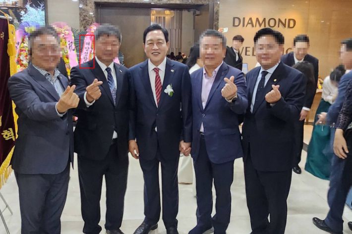 참석자 뒤로 '해양경찰'이라고 적힌 화환이 보인다. 가운데는 김선교 의원. 최호섭 안성시의회 운영위원장 스레드 캡처 |