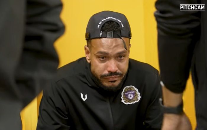 FC안양 외국인 공격수 모따가 지난 28일 광주FC전 직후 라커룸에서 눈물을 흘리고 있다. 사진 | 안양 유튜브 채널 캡처 |