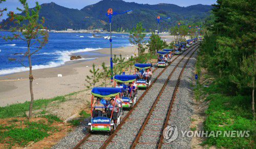 (삼척=연합뉴스) 유형재 기자 = 강원 삼척의 대표 관광명소인 해양레일바이크가 올해로 개장 15주년을 맞았다.