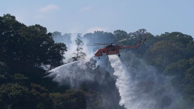 산불 진화 훈련에서 대형 헬기가 물을 투하하고 있다. 산림청 제공