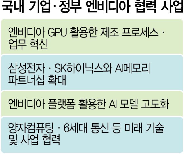 AI 생태계의 핵심인 AI 가속기를 만드는 엔비디아는 삼성전자·현대차그룹과 밸류체인(공급망)이 긴밀하게 얽혀 있다. 삼성전자는 AI 가속기의 필수품인 D램과 고대역폭메모리(HBM) 등을 생산하고 있고, 엔비디아는 자율주행과 AI 로봇에 자체 플랫폼을 제공하고 있다. 황 CEO가 이날 ‘절친’을 뜻하는 깐부치킨을 회동 장소로 정한 것도 이 같은 세 회사의 관계가 반영됐다는 해석이 나온다.