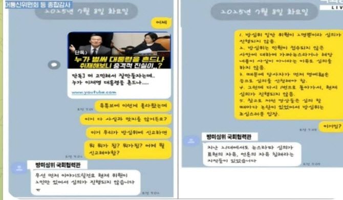 최민희 위원장이 공개한 의원실 보좌진과 방미심위 국제협력간 사이의 카카오톡 대화