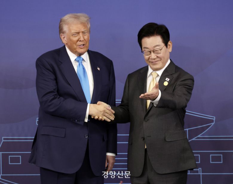 이재명 대통령과 도널드 트럼프 미국 대통령이 지난 29일 경북 경주박물관에서 가진 한·미 정상회담에서 기념사진을 촬영하고 있다. 김창길 기자 |