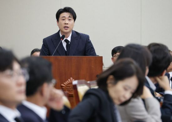 30일 서울 여의도 국회 과학기술정보방송통신위원회에서 열린 종합감사에서 유튜브 채널 '장사의 신'을 운영하는 은현장 씨가 참고인 신분으로 출석해 의원 질의에 답변하고 있다. 연합뉴스 |